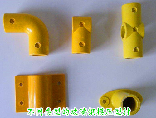 本公司生產各種不同類型的模壓類產品,其中以型材類的模壓產品使用居多,如三通、底座、v型座、四通、直通等產品常被用來組裝玻璃鋼護欄、圍欄。
