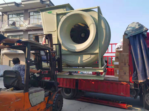 因為生產原材料使用的是非金屬,故而風機的重量并不是很重。如最大號的14C玻璃鋼風機的重量也僅在1.5噸左右,在裝卸時使用叉車或吊車即可。