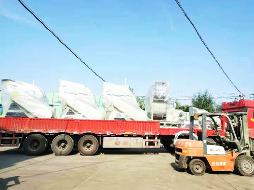 從風機的外殼類型進行劃分,風機主要分為圓口與方口這兩種。如下圖所示,河南一客戶訂購了一批玻璃鋼離心風機分別包括了圓口離心風機和方口離心風機。方口離心風機和圓口風機的主要區別是出風口為方形,而進風口同樣是圓形的。下圖為方口與圓口玻璃鋼離心風機發往河南洛陽的裝貨圖。
