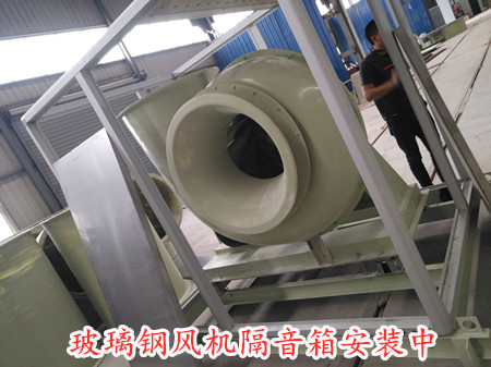 主要由兩部分組成,玻璃鋼離心式風(fēng)機和風(fēng)機隔音箱體(參照上圖)。